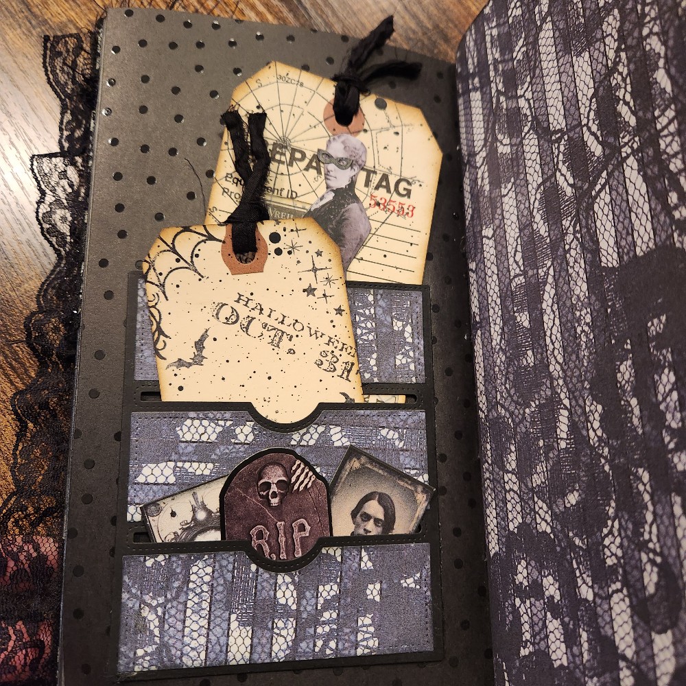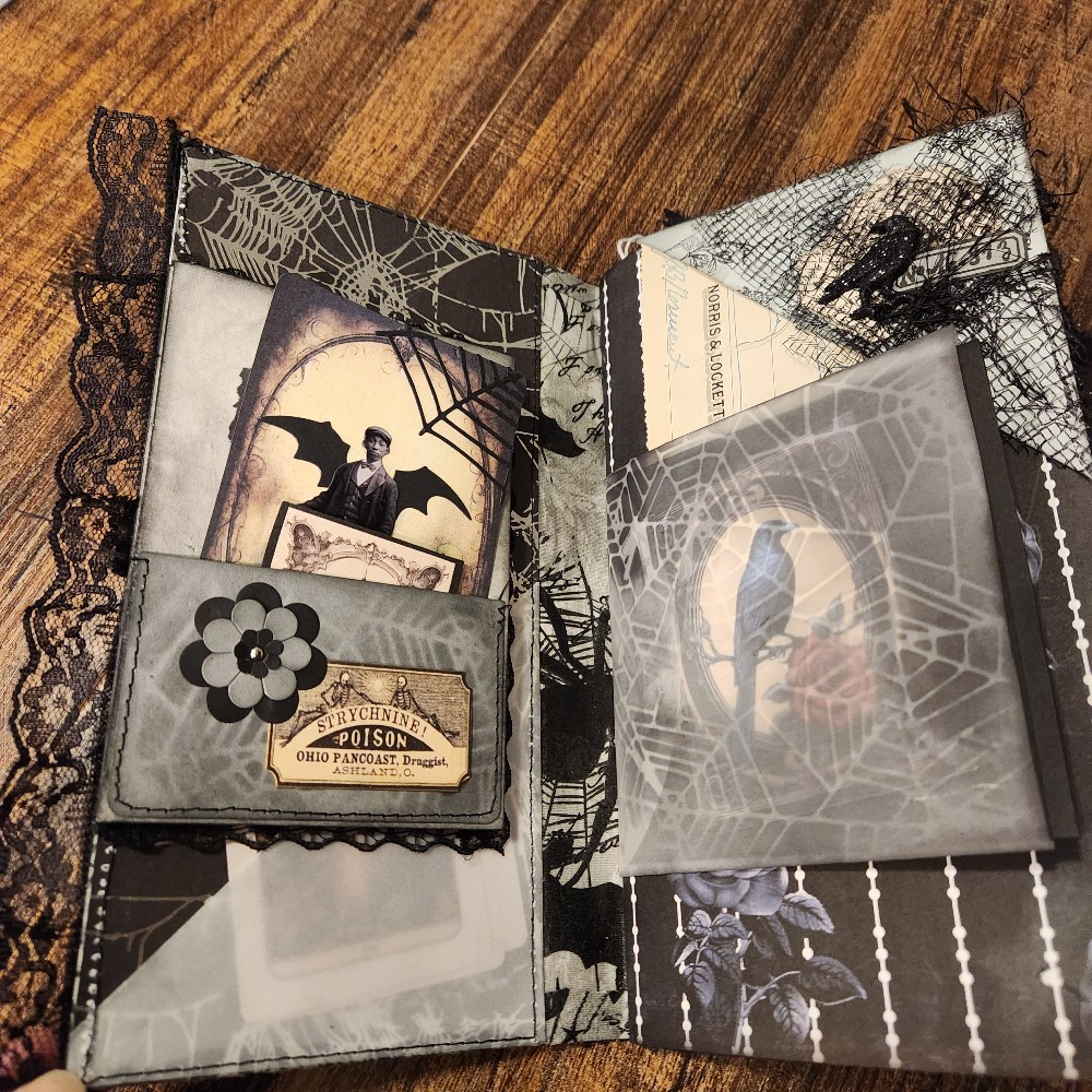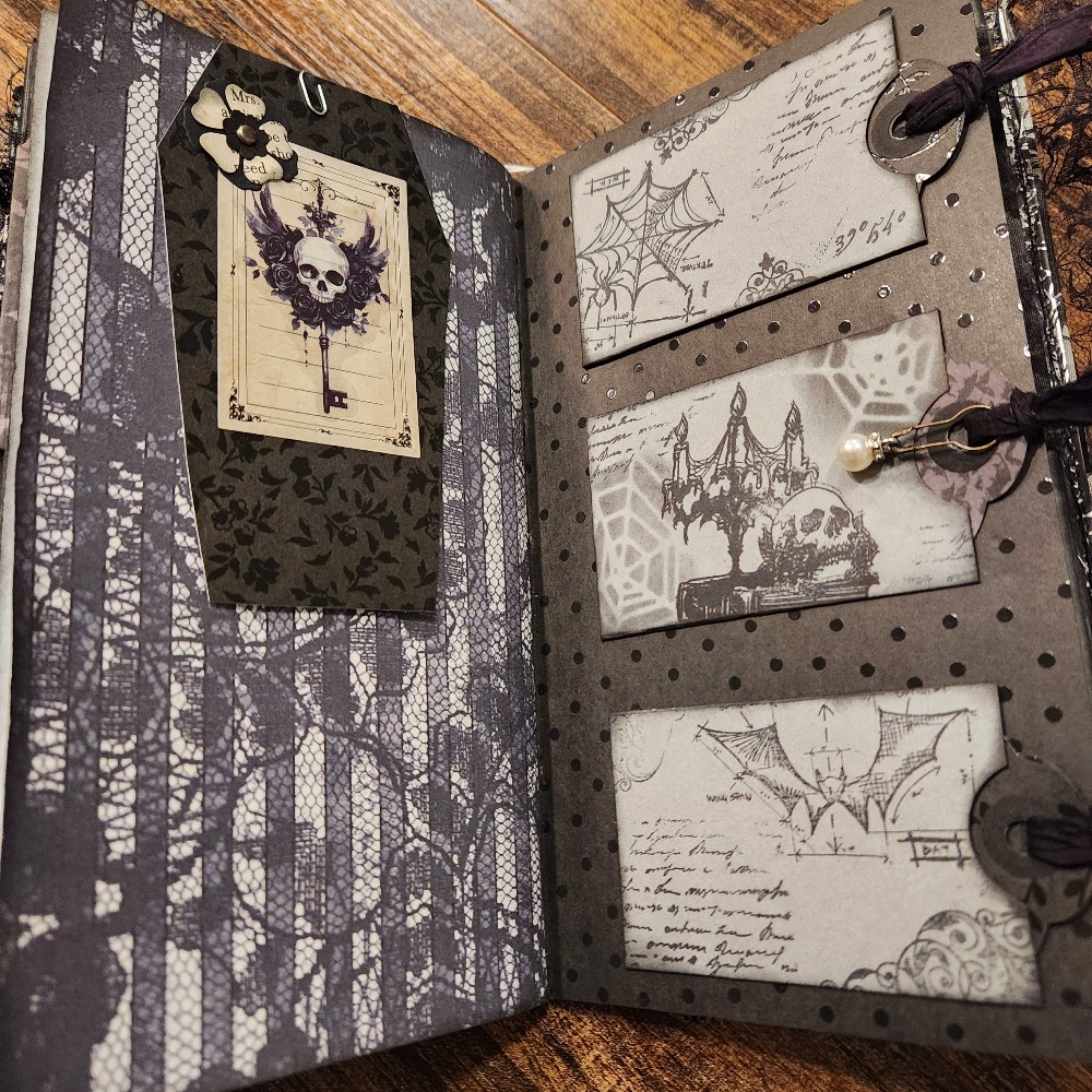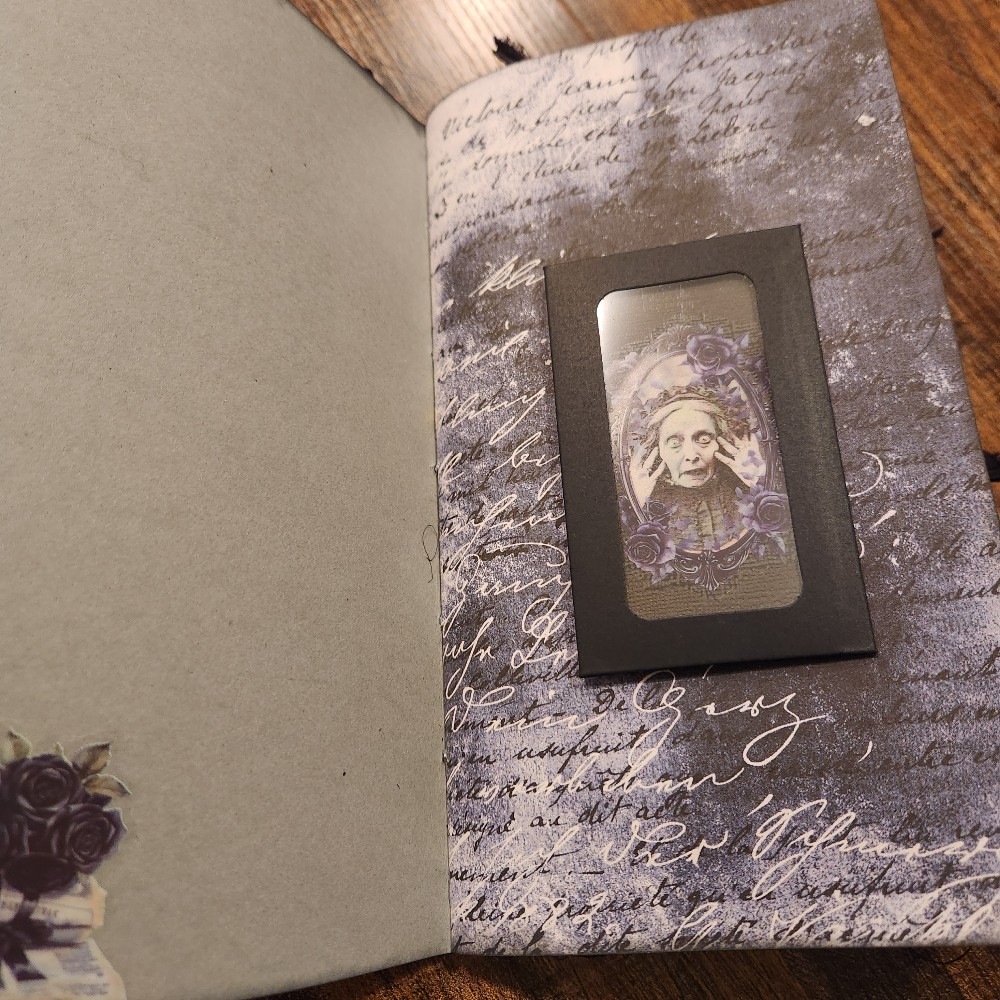 The journal is approximately 8 1/2 x5 inches. 60 pages wit lots of tuck spots, journaling cards and Tags.